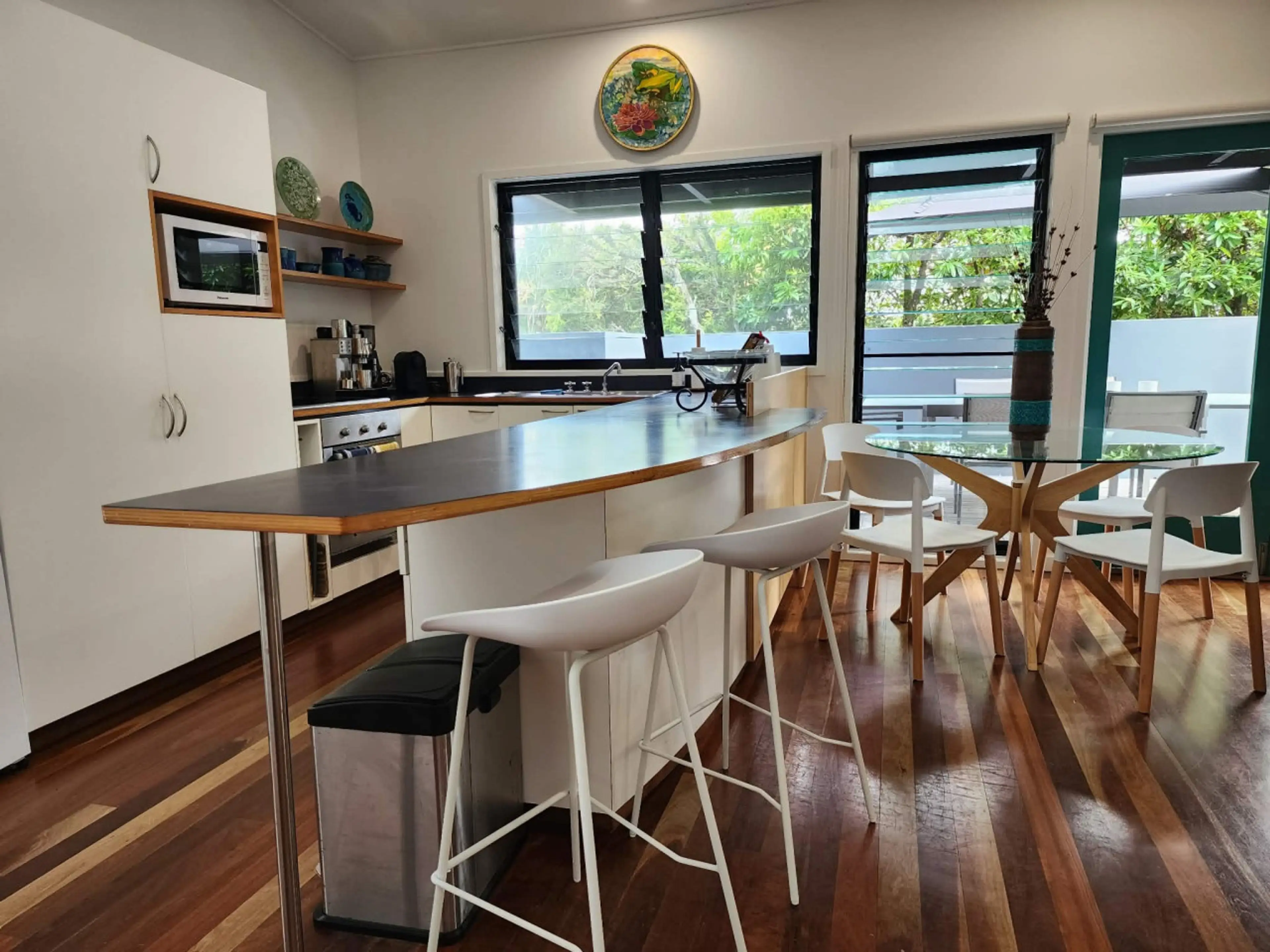 The beachhouse had every comfort , stylish furniture and lquality linen. A home away from home. Would be great for families,as extras such as surfboards, books, toys, are available. Plenty of rooom to be outdoors, some undercover, some in the open with a barbeque. It was great to be able to have our little dog with us. It rained most days so we appreciated being able to use the washer and dryer. I could see children loving being able to climb the staircase to the loft bedroom. This house may not work so well for 2 couples as there is only one bathroom. We had 2 adult grandchildren with us for a night and managed quite well but probably a week of sharing a bathroom would be testing.